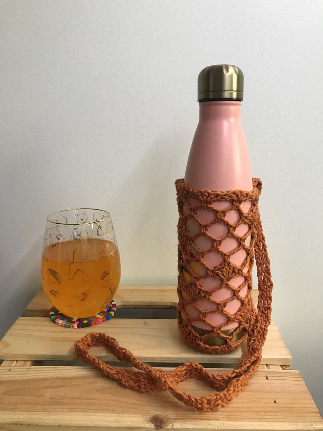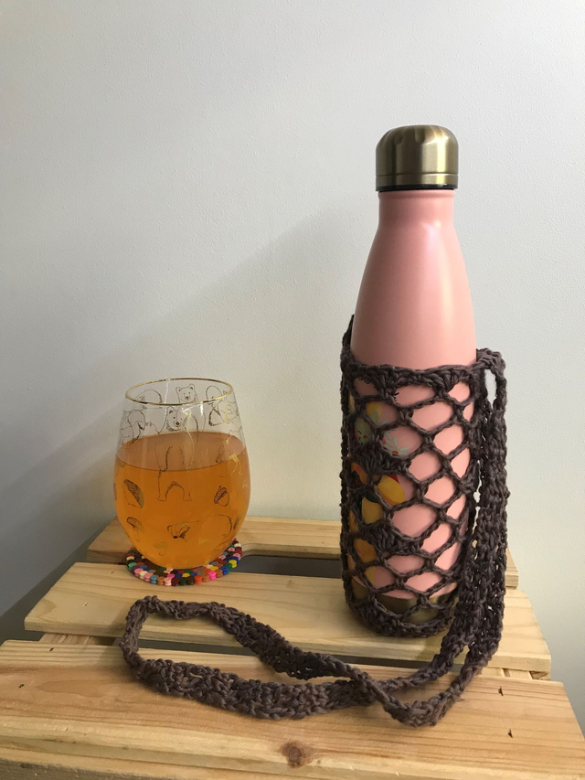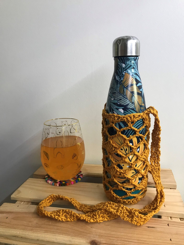 Restez hydraté(e) pendant vos balades sans vous encombrer d'un sac. Grâce au porte gourde crocheté à la main, emportez votre bouteille partout.